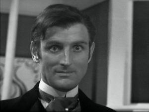 This particular episode is called To Set a Deadly Fashion and involves an absurd spying plot involving haute couture Gerald Harper as Adam Adamantdresses containing hidden bugging devices which are sold to diplomats’ wives – and which can also kill. We never find out who the secrets are being sold to but it doesn’t really matter – the episode is carried by Adam Adamant himself and Roger Clair, the villain. Gerald Harper (right – he has something of the David Tennant about him) plays the title character perfectly. He’s charismatic and poised, but thrown by the modern world: in this story, he finds himself sitting beside the catwalk at a fashion show at which models in swimwear are paraded in front of him. Appalled, he averts his eyes.